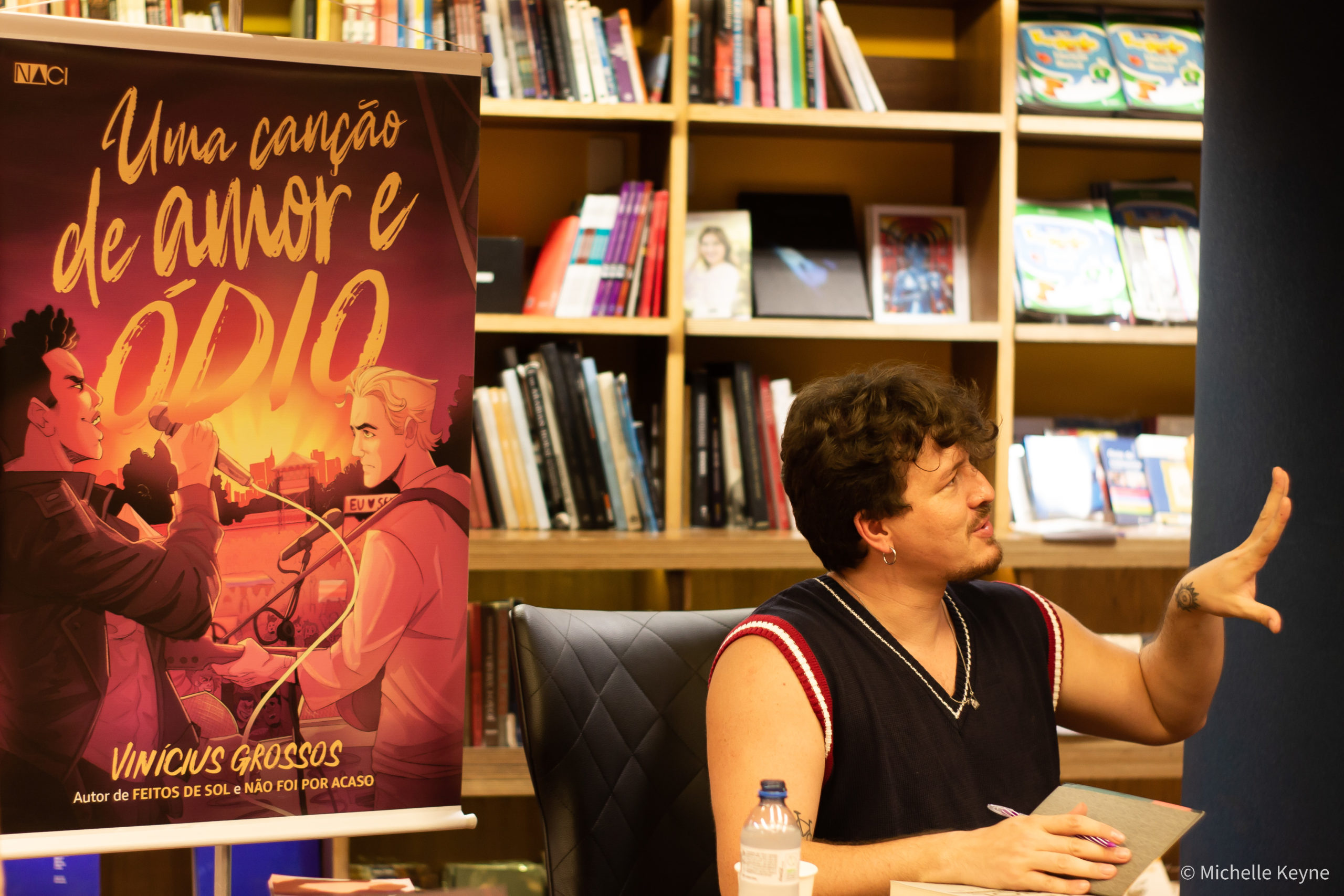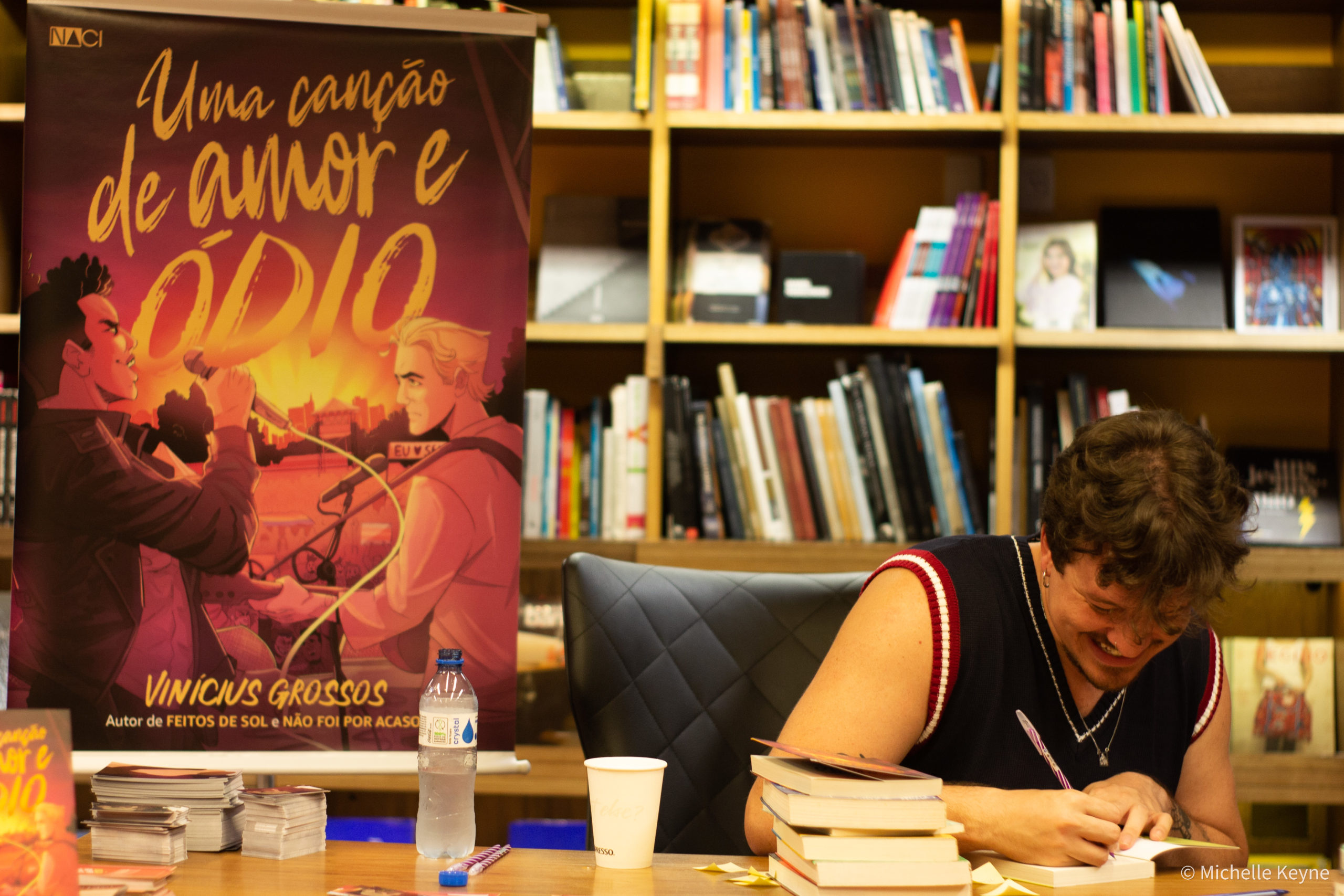 No último sábado, 21 de janeiro, aconteceu o lançamento do mais novo livro de Vinícius Grossos, Uma canção de amor e ódio, segundo livro do autor publicado pela Naci, selo de ficção comercial da Editora Nacional. O jovem adulto conta a história de dois astros em ascensão do pop nacional, Benjamin e Theodoro, que são obrigados a compor uma música juntos para salvar suas carreiras. O romance LGBTQIAP+ é alto astral e fez sucesso também pela presença de cenas hot, novidade nos livros do autor.